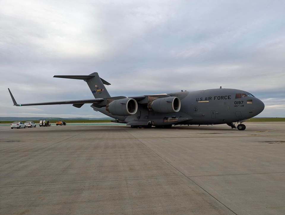 Aeronava a livrat, de asemenea, echipamente medicale și de apărare pentru a fi donate Ministerului Apărării, ca parte a asistenței prin grant americane.
