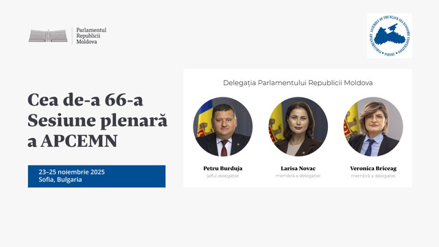 Delegația Parlamentului Republicii Moldova participă, în perioada 23 – 25 noiembrie, la cea de-a 66-a sesiune plenară a Adunării Parlamentare a Cooperării Economice la Marea Neagră (APCEMN), desfășurată la Sofia, Bulgaria.