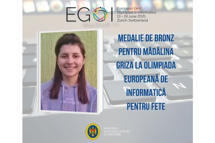 Mădălina Griza, elevă la Liceul teoretic „Orizont” din Chișinău, a obținut medalia de bronz în cadrul primei ediții a Olimpiadei Europene de Informatică pentru fete. Concursul, organizat de Elveția, s-a desfășurat online în perioada 14 – 19 iunie.