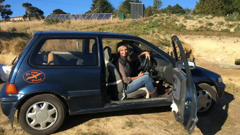 O bunică din Noua Zeelandă a transformat cu mâinile ei o rablă într-o mașină electrică, alimentată cu energie solară. A lucrat 8 luni la ea. Deja o conduce de trei ani și spune că funcționează fără probleme.