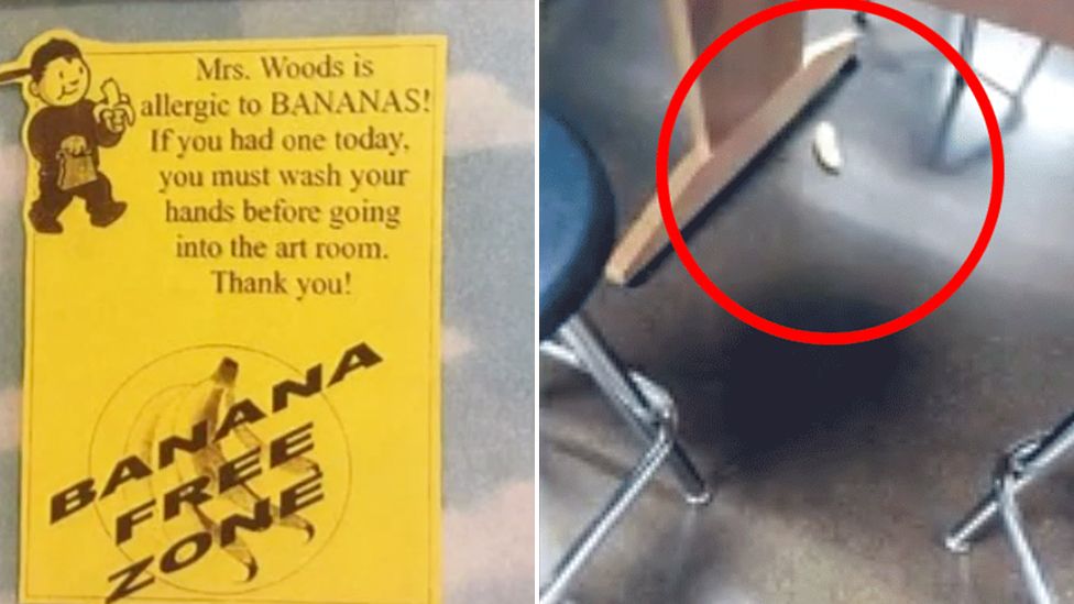Șocul anafilactic este o reacție alergică severă care poate provoca moartea. Cei trei elevi știau că profesoara lor este alergică la banane după ce aceasta le ceruse elevilor ei să se spele pe mâini înainte de a intra în clasă dacă cumva puseseră mâna pe o banană. Cei trei au uns cu banană mânerul și ușa de la clasa unde profesoara ținea cursurile.