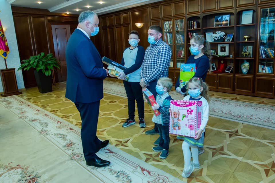 De Ziua internațională a copilului, președintele Igor Dodon a invitat la Președinție Familia Ciornenco din Chișinău, în care patru copii cresc fără mamă. Marina Ciornenco, de doar 39 de ani, a plecat la ceruri la începutul anului 2019 din cauza unei boli incurabile, transmite Telegraph.md