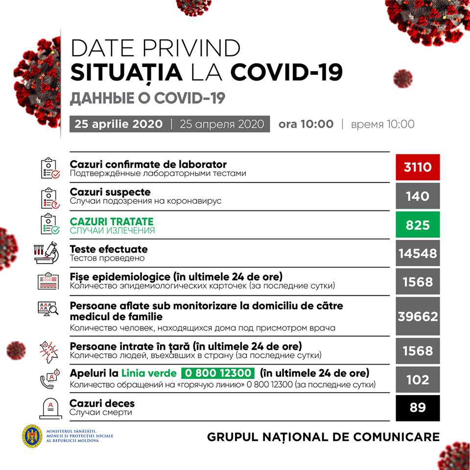Pe parcursul zilei de ieri, 70 persoane s-au externat, astfel în total 825 persoane a fost tratate de COVID-19.