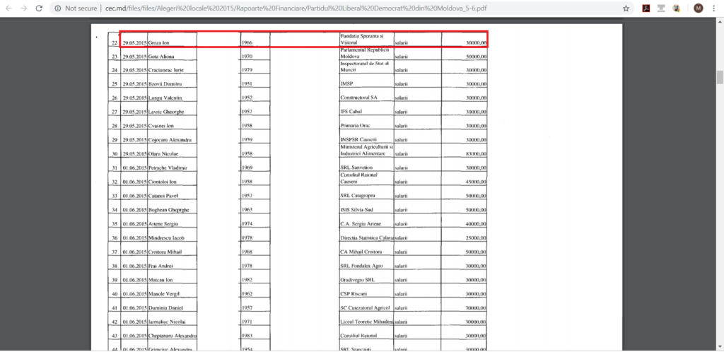 În 2015, în cadrul campaniei electorale pentru alegerile locale Ion Groza a făcut o donație în mărime de 30.000 de lei către PLDM. Aceeași sumă figurează la capitolul donații și în raportul financiar al PLDM pentru 2015, prezentat la Comisia Electorală Centrală.