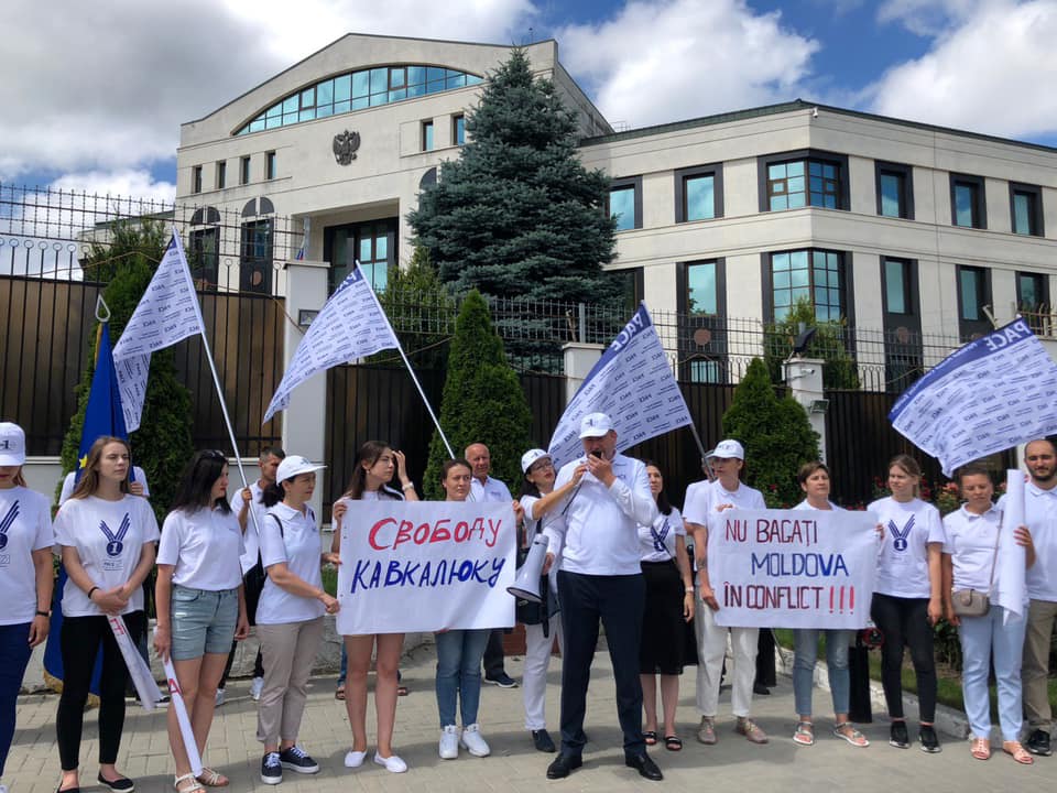Protestele PACE față de reținerea liderului PACE Gheorghe Cavcaliuc pe aeroportul Șeremetievo au continuat cu o adunare în fața Ambasadei Rusiei la Chișinău.