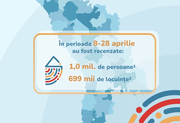 Biroul Național de Statistică informează că, la finele zilei de 28 aprilie 2024, în cadrul Recensământului populației și locuințelor au fost recenzate circa 699 mii de locuințe (inclusiv cele neocupate) și circa 1 013 000 de persoane (numărul populației recenzate include atât persoanele cu reședință obișnuită, cât și cele fără reședință obișnuită).