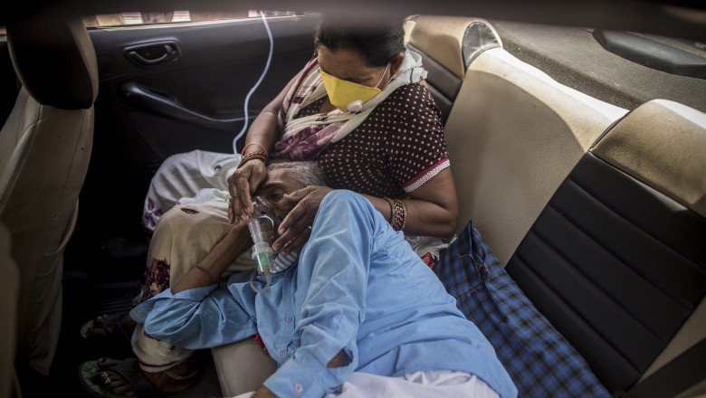 Un bărbat a declarat unei televiziuni locale că a stat la coadă mai multe ore pentru a umple un cilindru de 10 litri de oxigen pentru tatăl său de 65 de ani internat la un spital din Delhi.