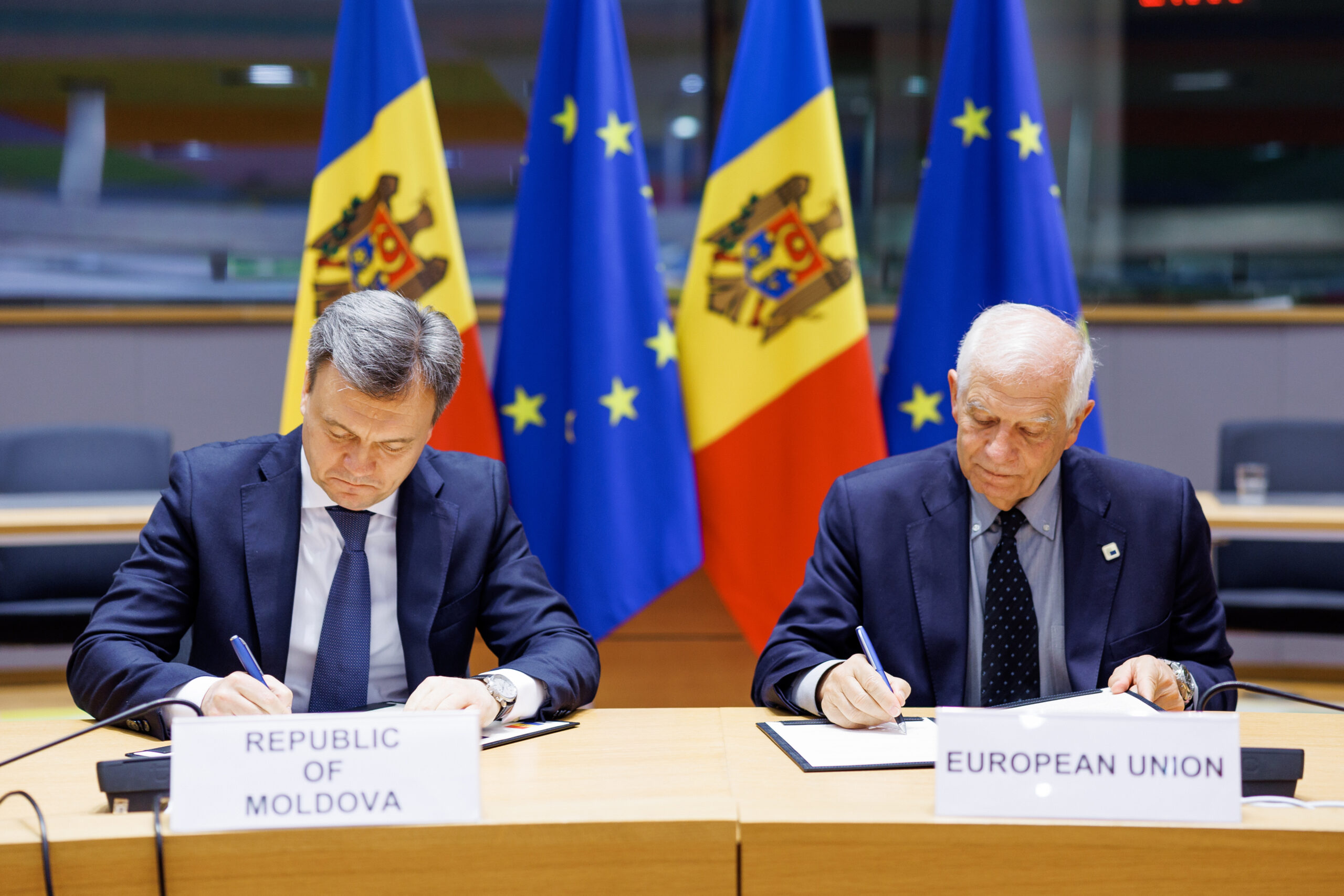 Prim-ministrul Dorin Recean și vicepreședintele Comisiei Europene, Înaltul Reprezentant al UE pentru Afaceri Externe și Politică de Securitate, Josep Borrell Fontelles, au semnat Parteneriatul pentru Securitate și Apărare dintre Republica Moldova și Uniunea Europeană. Premierul a menționat că documentul ne va ajuta să consolidăm domeniul apărării, să sporim securitatea cibernetică și să contracarăm tentativele Rusiei de a interveni în procesele noastre democratice.