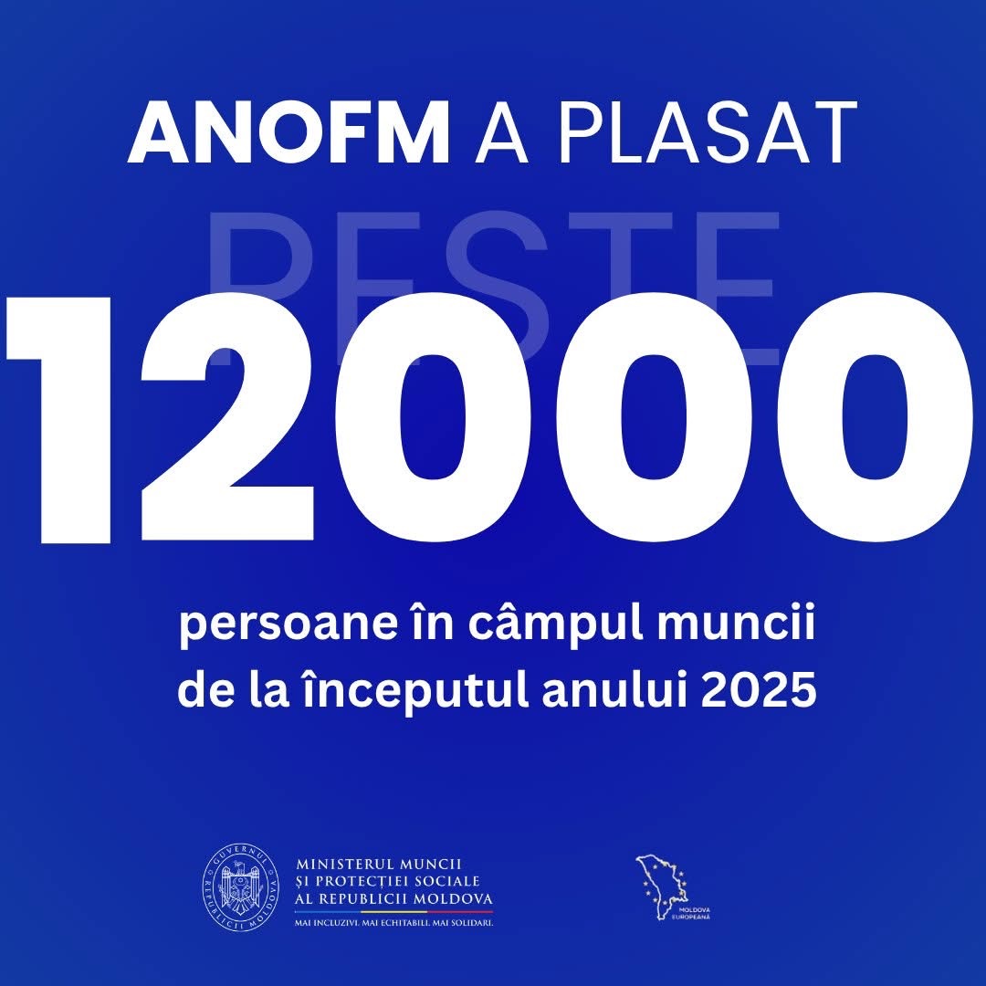 12 059 de persoane, aflate în căutarea unui loc de muncă au fost angajate în câmpul muncii, prin intermediul Agenției Naționale pentru Ocuparea Forței de Muncă (ANOFM), de la începutul anului 2025. Printre acestea se numără 4 003 șomeri (33,2%) și 342 șomeri-zilieri sau șomeri angajați pe perioadă determinată până la 3 luni.