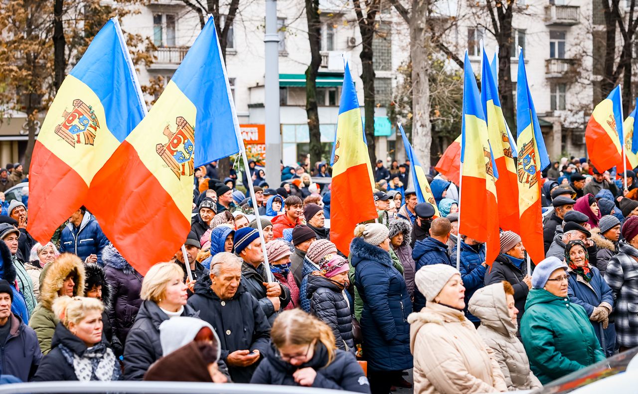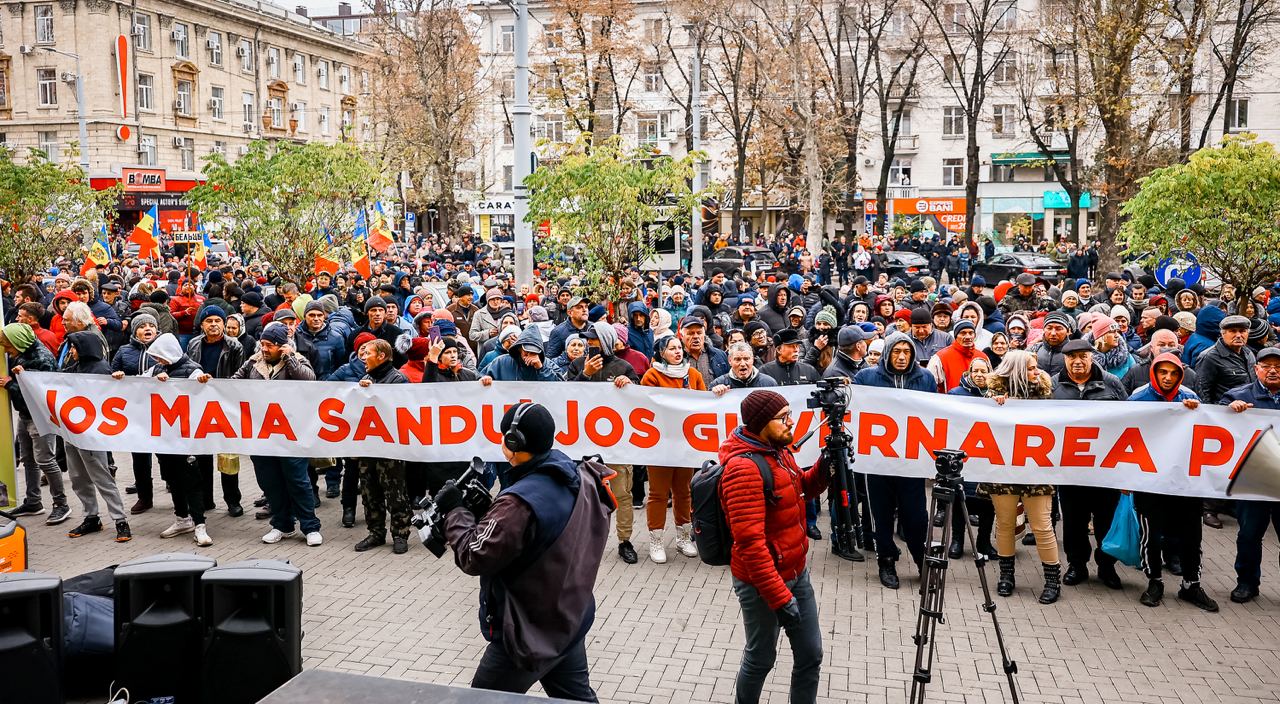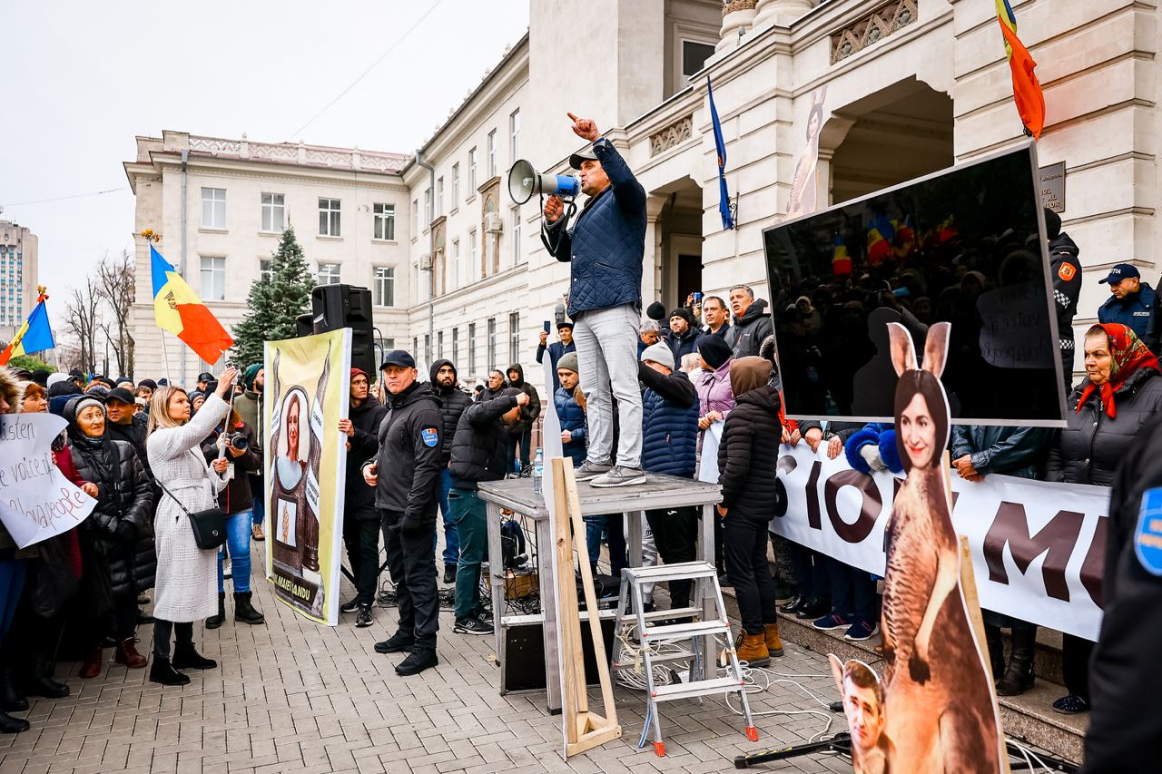Mulțimea a scandat „Jos Maia Sandu!”, „Noi suntem poporul!” și „Rușine!”.