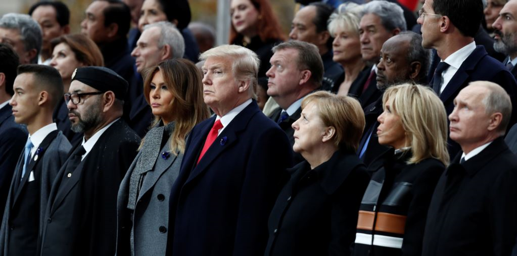 În cursul după amiezii, la Paris are loc o reuniune inițiată de președintele francez, „Forumul Pacii” la care au participat cancelara geramă Angela Merkel, președintele rus Vladimir Putin, președintele Turciei Recep Tayyip Erdogan, între alții dar nu și președintele american Donald Trump. Trump a evitat sâmbătă și o ceremonie militară în memoria sondaților căzuți în Primul Război Mondial.