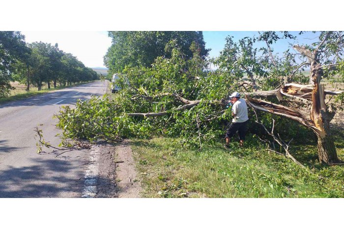 Partea carosabilă, acostamentul, șanțurile de evacuare a apelor și podețele a 20 de segmente de drum au fost înnămolite. Totodată, vântul puternic a doborât mai mulți arbori.