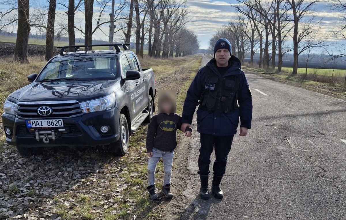 Un băiat de aproximativ 6 ani, care se deplasa singur și dezorientat în apropierea zonei de frontieră, a fost depistat de o patrulă mobilă din cadrul Sectorului Poliției de Frontieră Lopatnic.