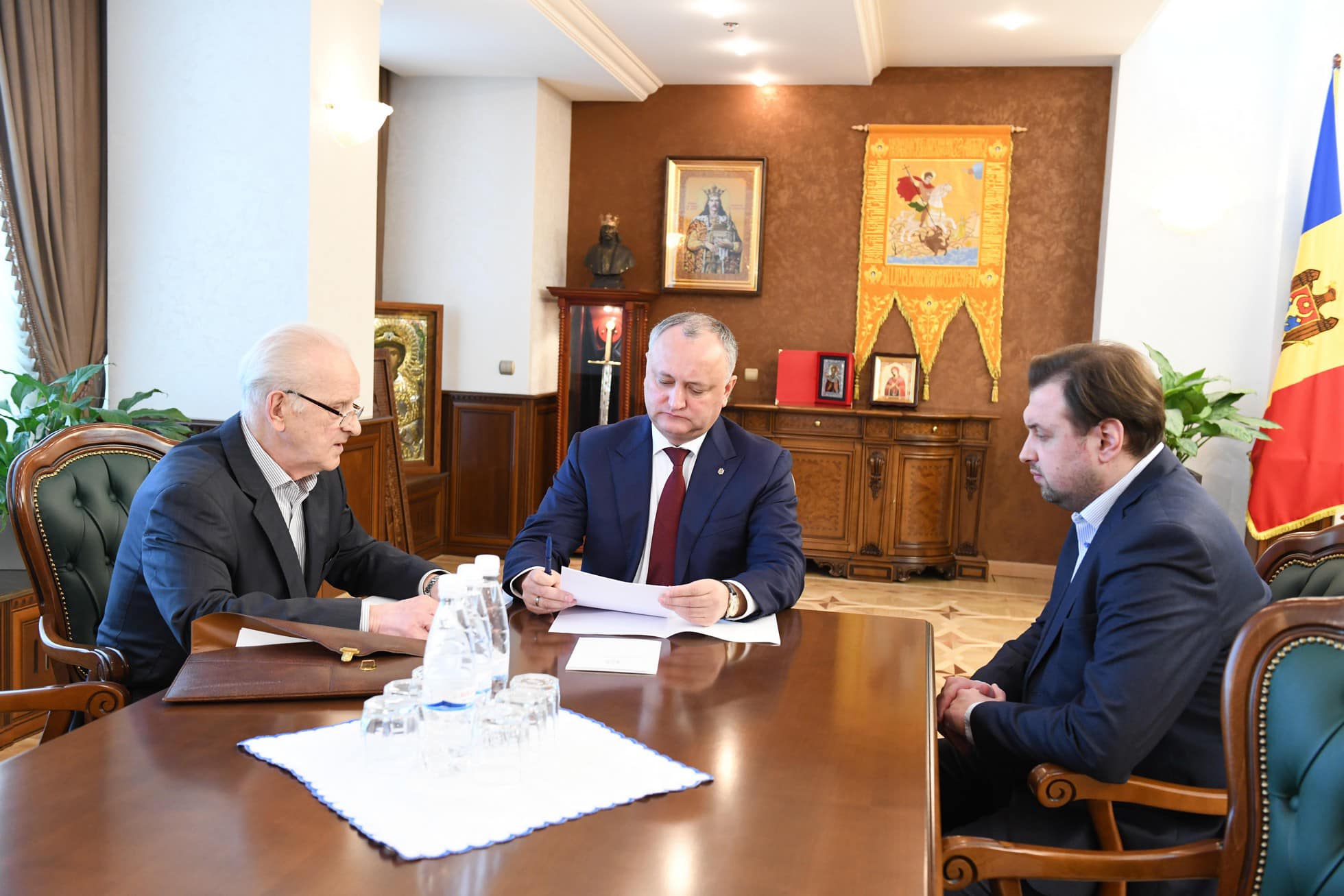 Președintele RM, Igor Dodon, a avut azi o întrevedere cu Eduard Smirnov, deputat în Parlamentul Republicii Moldova, decanul de vîrstă al Parlamentului, care, conform Constituției RM urmează să prezideze ședința de constituire a legislativului nou-ales.
