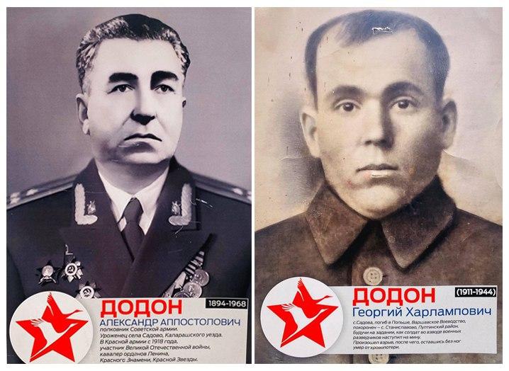 De asemenea, vreau să-l menționez și pe Alexandru Dodon, născut în 1894 în Sadova, participant activ la luptele împotriva cotropitorilor fasciști, decorat cu mai multe distincții, printre care Ordinul „Steaua Roșie”, Ordinul „Drapelul Roșu”, Medalia „Pentru victoria asupra Germaniei în Marele Război pentru Apărarea Patriei din 1941-1945” ș.a.,” a scris Dodon.