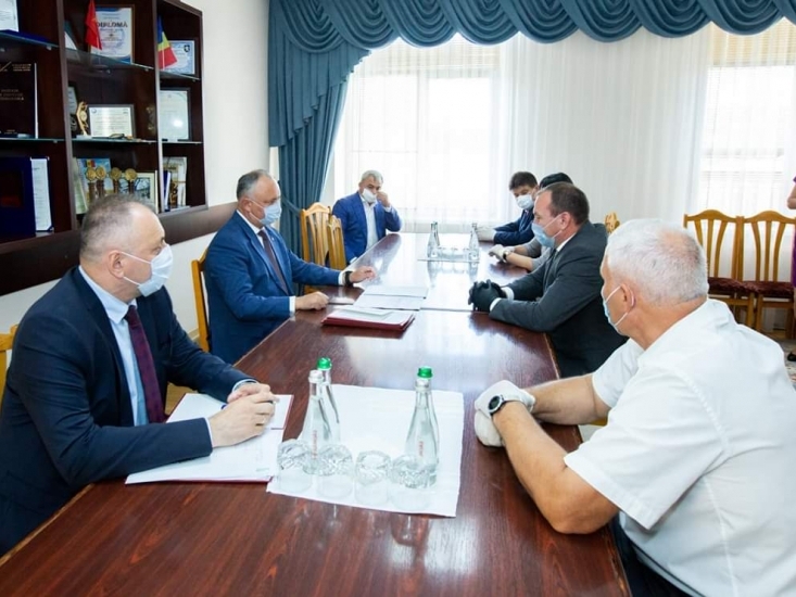 Inițial, Igor Dodon a avut o discuție cu administrația raionului condusă de Iurie Levinschi, președintele raionului Hîncești.