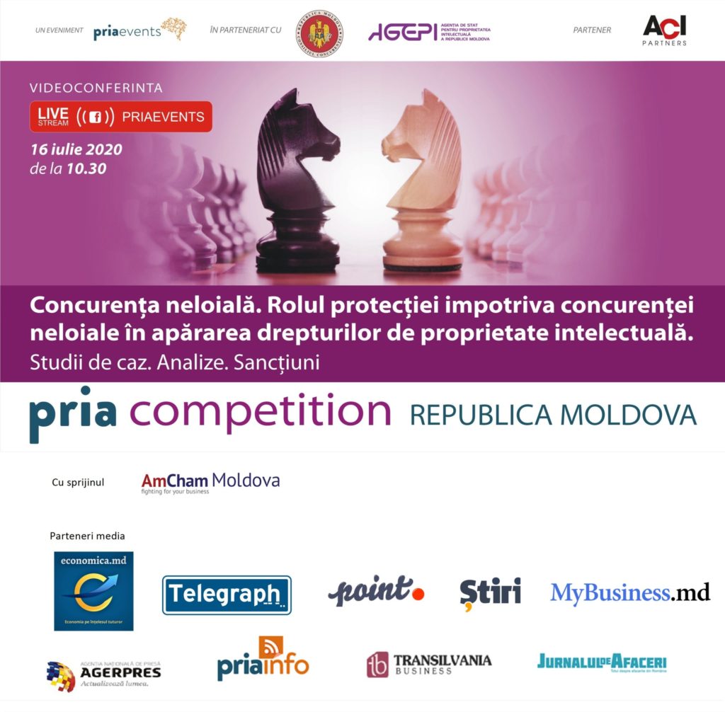 PRIAevents și Consiliul Concurentei Republica Moldova și cu Agenția de Stat pentru Proprietatea Intelectuală (AGEPI), având ca Partener Principal al evenimentului casa de avocatură ACI Partners, vă invită la prima dezbatere online despre concurența neloială și despre rolul protecției împotriva concurenței neloiale în apărarea drepturilor de proprietate intelectuală, și anume, videoconferința PRIA COMPETITION Republica Moldova, în 16 iulie 2020, LIVE de la ora 10,30.