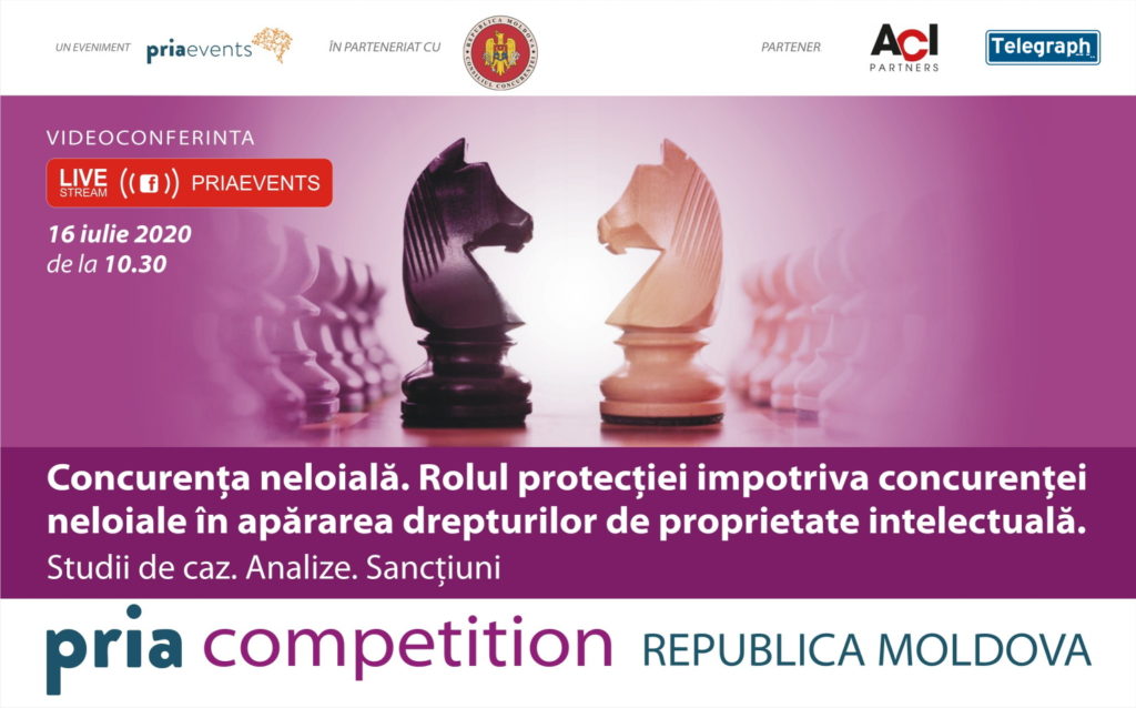 PRIAevents și Consiliul Concurentei Moldova vă invită la prima dezbatere online despre concurența neloială și despre rolul protecției împotriva concurenței neloiale în apărarea drepturilor de proprietate intelectuală, și anume, videoconferința PRIA COMPETITION Chișinău, în 16 iulie 2020, LIVE de la ora 10,30.