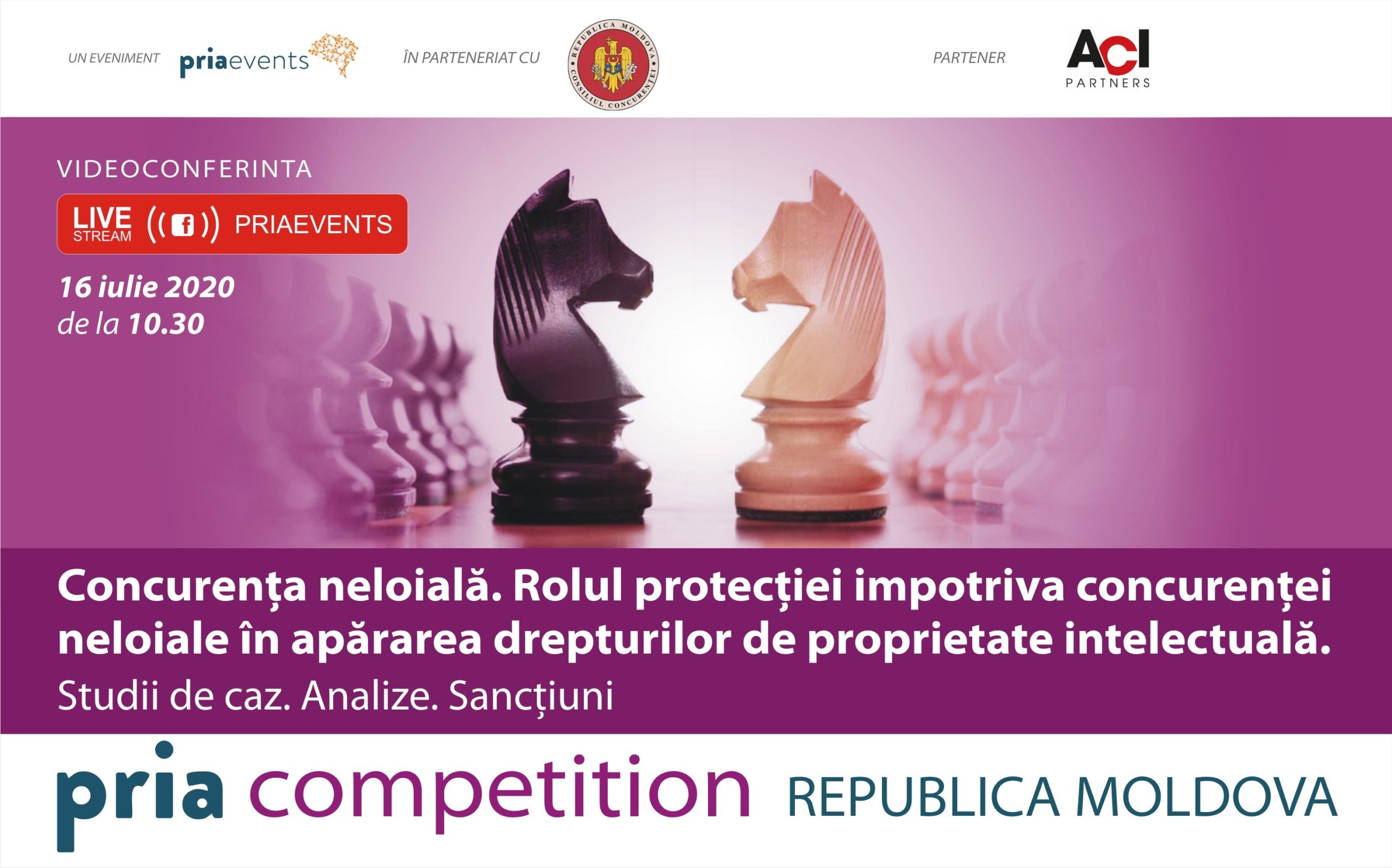 PRIAevents și Consiliul Concurentei Republica Moldova și cu Agenția de Stat pentru Proprietatea Intelectuală (AGEPI), având ca Partener Principal al evenimentului casa de avocatură ACI Partners, vă invită la prima dezbatere online despre concurența neloială și despre rolul protecției împotriva concurenței neloiale în apărarea drepturilor de proprietate intelectuală, și anume, videoconferința PRIA COMPETITION Republica Moldova, în 16 iulie 2020, LIVE de la ora 10:30.