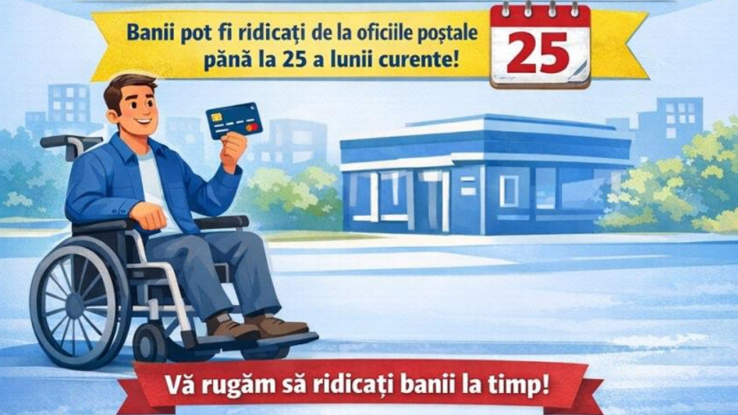 Pentru persoanele care nu dețin un card bancar, plata va fi transferată către Întreprinderea de Stat „Poșta Moldovei”, unde poate fi ridicată în numerar de la oficiile poștale până la data de 25 februarie.