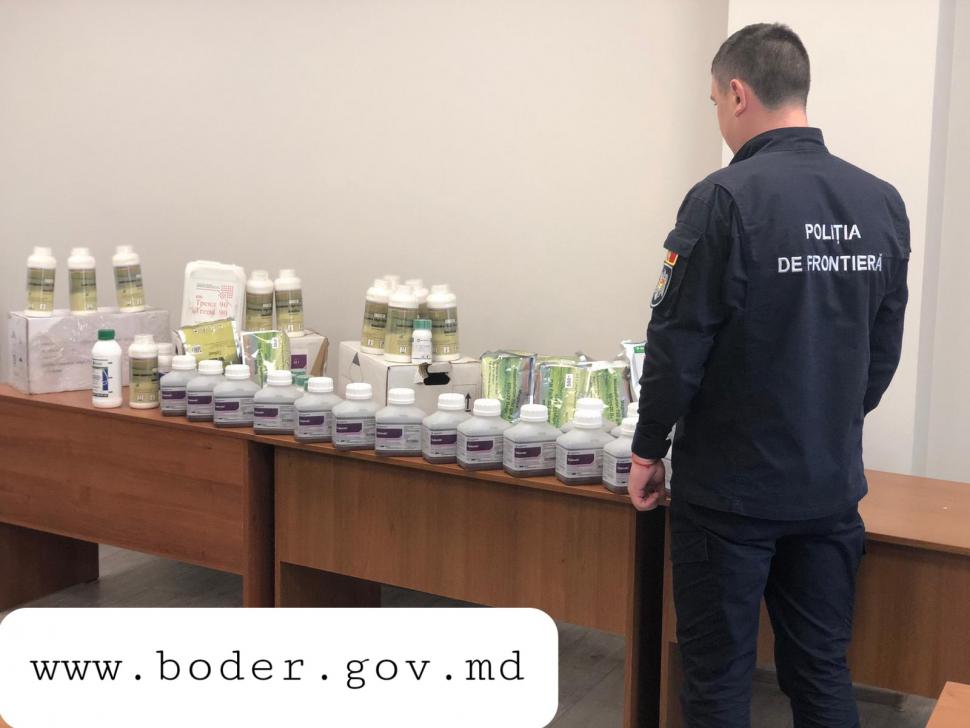 În timpul controlului s-au depistat produse de uz fitosanitar în asortiment, pentru care șoferul nu deținea niciun act de însoțire sau proveniență. Ca urmare, peste 40 de litri și șase kilograme de soluții destinate tratării culturilor agricole au fost ridicate și plasate în camera de păstrare a subdiviziunii instituției de frontieră. Conform inscripțiilor indicate, acestea sunt de origine ucraineană și spaniolă însă fără detaliile privind importatorul național. Din cercetările primare, bunurile ar fi valorificate în sumă de o sută de mii de lei.