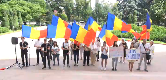 Manifestanții acuză noua guvernare ACUM-PSRM că nu dorește să-i ofere accesul liber lui George Simion în Republica Moldova pe motiv că promovează unirea celor două maluri ale Prutului.