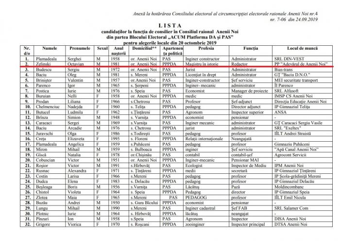 Potrivit datelor prezentate de către Comisia Electorală Centrală, Octavian Zelinski figurează sub nr.2 în lista candidaților blocului ACUM la funcția de consilieri raionali pentru alegerile din 20 octombrie.
