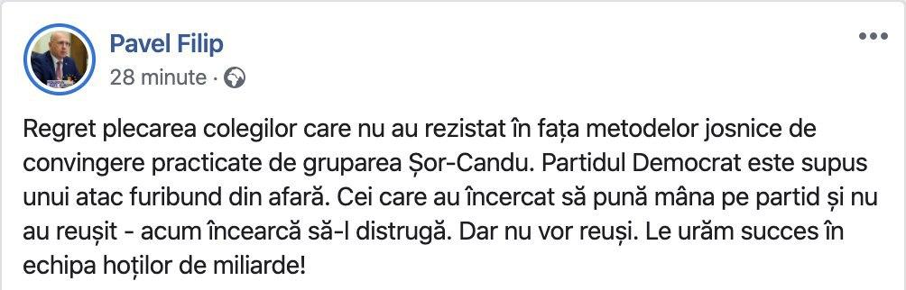 Filip spune că regretă aderarea lor la grupul PRO MOLDOVA și afirmă că dânșii nu au rezistat în fața metodelor josnice de convingere practicate de gruparea Șor-Candu.