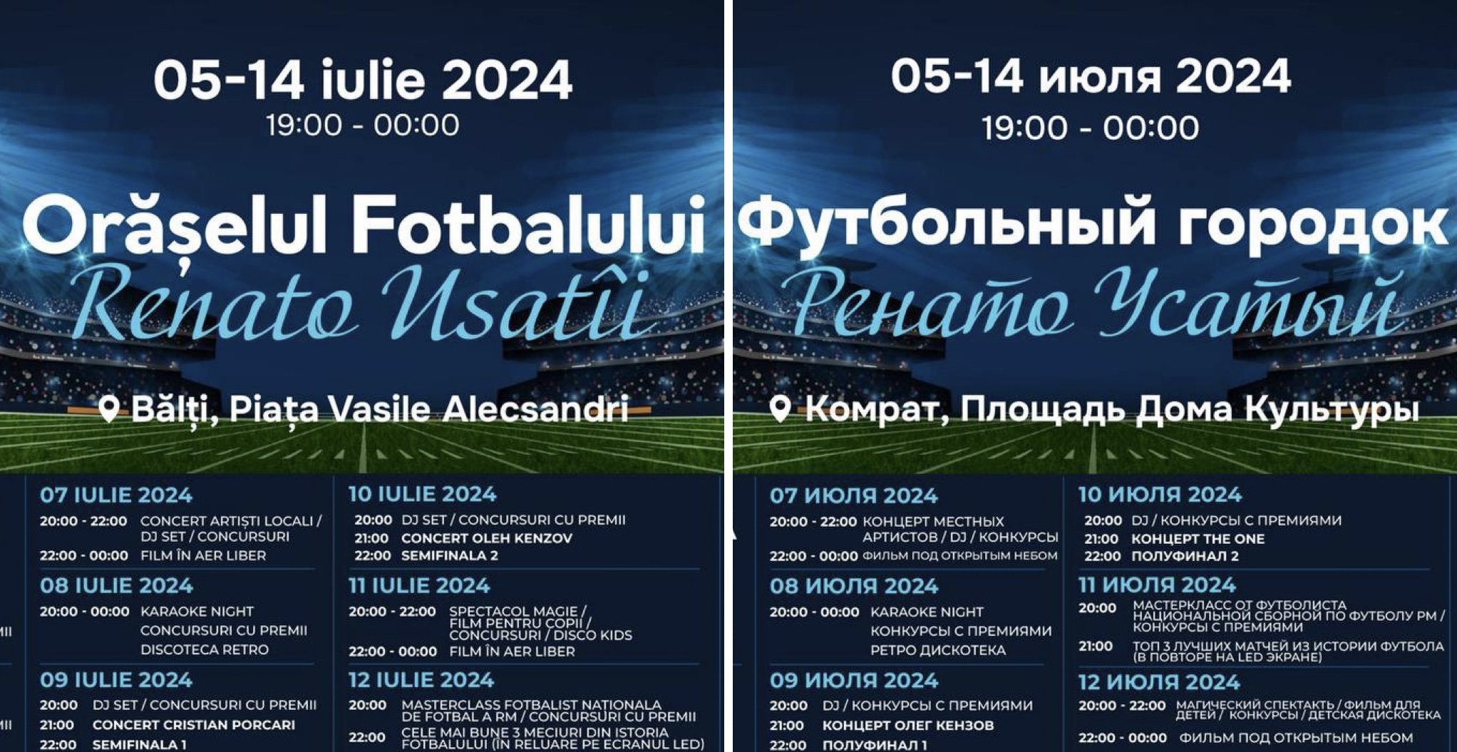 Președintele ”Partidului Nostru”, Renato Usatîi, și-a îndeplinit promisiunea. În orașele Bălți și Comrat a fost lansat Orășelul Fotbalului. Din 5 iulie și timp de nouă zile doritorii vor putea urmări meciurile din Campionatul European – Euro 2024, pe un ecran mare, amenajat în centrul celor două localități.