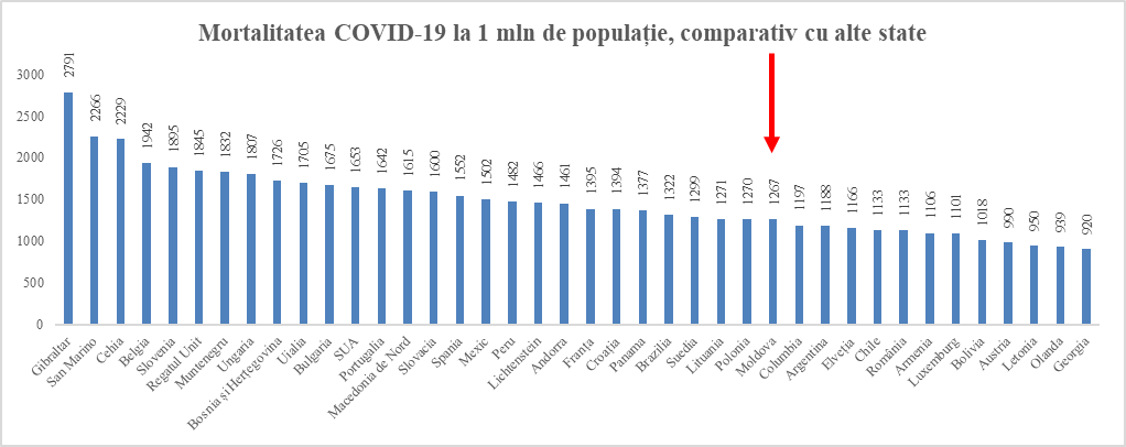 În contextul informațiilor eronate apărute în spațiul public, precum că Republica Moldova se află pe locul 3 în lume privind numărul deceselor cauzate de COVID-19, MSPS menționează următoarele: