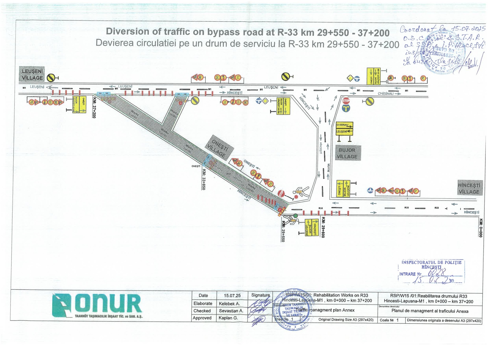 Pe durata lucrărilor, traficul va fi deviat temporar pe traseul care trece prin satul Bujor, raionul Hîncești. Devierile sunt semnalizate conform unei scheme rutiere provizorii.