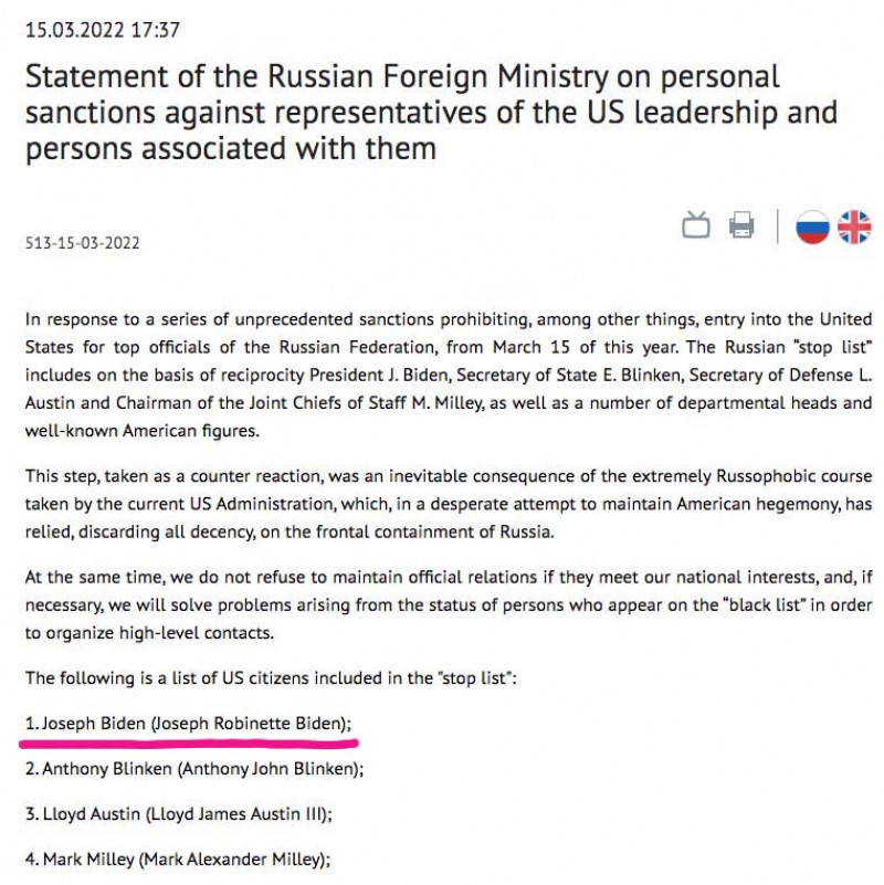 „În primul rând, precizez că președintele Biden este „Junior”. Deci, poate l-au sancționat pe tatăl lui, fie-i țărâna ușoară! În al doilea rând – și cred că nu vă va surprinde – niciunul dintre noi nu plănuia călătorii în Rusia, niciunul dintre noi nu are conturi în Rusia, la care să nu mai avem acces”, a spus purtătoarea de cuvânt a Casei Albe, Jen Psaki, în cadrul briefingului de presă de marți.