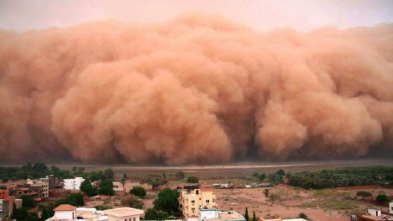 O uriaşă furtună de nisip a acoperit întregul oraş. Norul dens de praf s-a propagat cu repeziciune, iar vizibilitatea a fost redusă la zero.