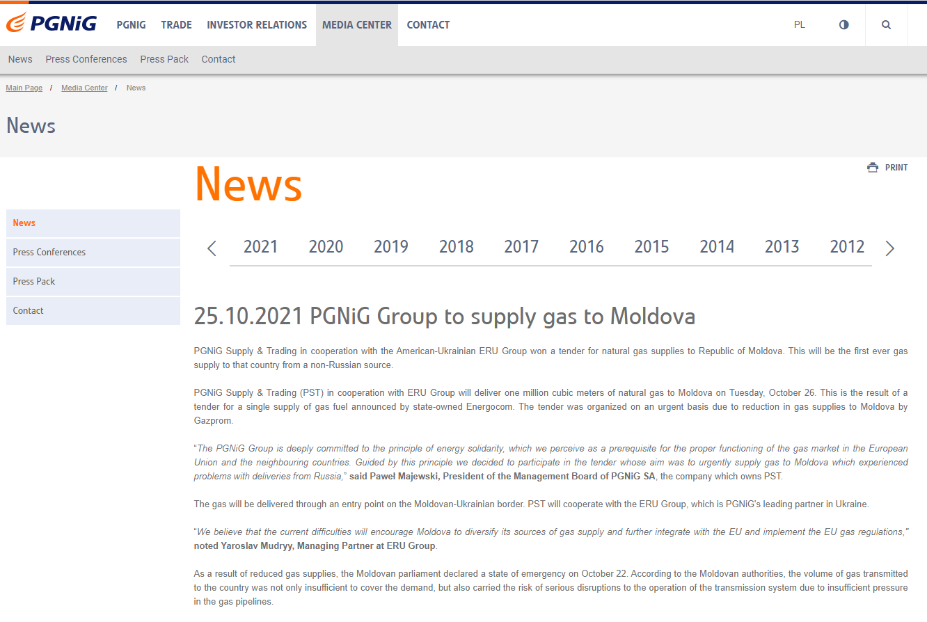 Amintim că luni, 25 octombrie, guvernul PAS de la Chișinău a anunțat că Energocom a încheiat un contract cu compania poloneză PGNiG pentru a procura un mln de metri cubi de gaz. Guvernare ține în secret însă, prețul de achiziționare a gazului.