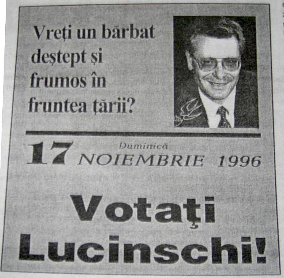Petru Lucinschi a fost președinte al Republicii Moldova în perioada anilor 1996-2000, a fost al doilea președinte al țării. În campania electorală, acesta s-a remarcat cu două lozinci care au ajuns să fie ținute minte și în prezent. Prima frază virală a fost „Vreți un bărbat frumos și deștept în fruntea țării? Votați Lucinschi!„, iar a doua fiind în limba rusă, traducerea căreia sună în felul următor „Dacă doriți să trăiți într-un stat suveran și nu în România Mare? Votați Lucinschi”.