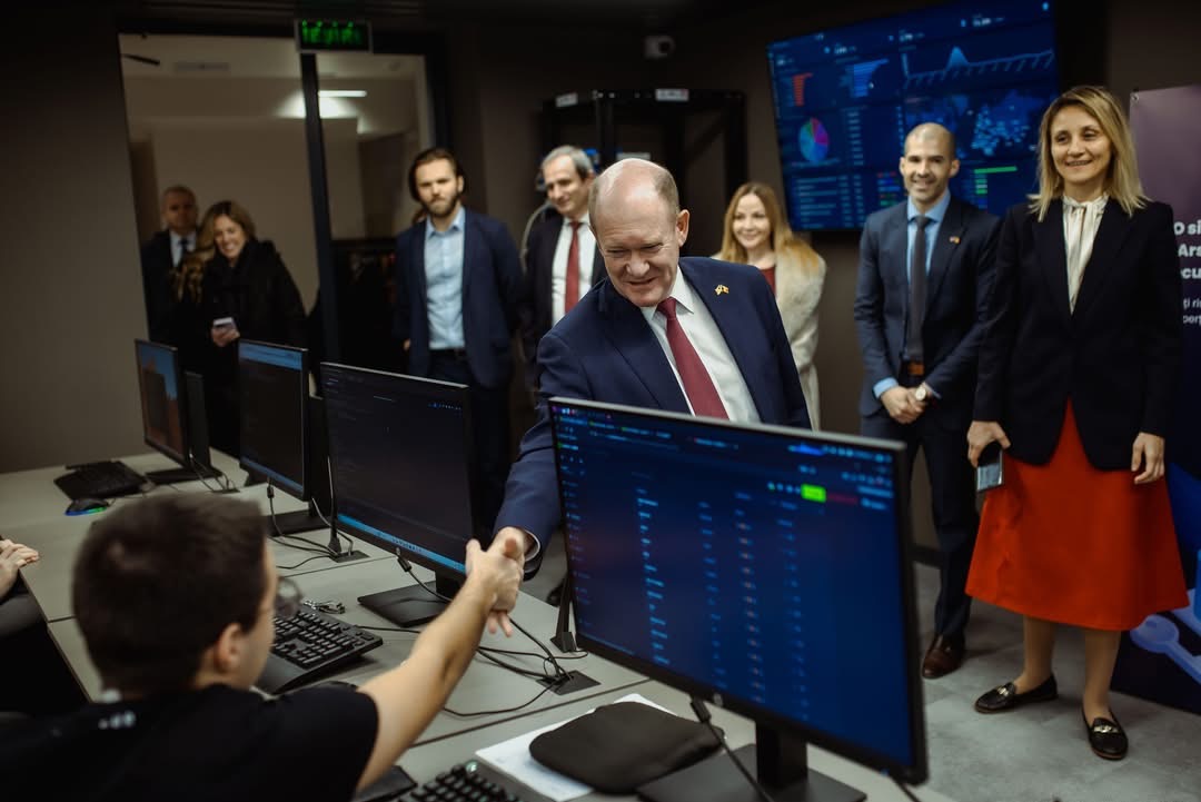 Săptămâna trecută, Senatorul american Chris Coons a vizitat Cybercor pentru a vedea din prima sursă cum asistența USAID contribuie la consolidarea securității cibernetice a Moldovei. În timpul vizitei, membrii delegației au discutat despre provocările de securitate cibernetică cu care se confruntă Moldova, cu accent pe necesitățile de instruire atât a profesioniștilor din domeniu, cât și a angajaților instituțiilor publice. Delegația a făcut un tur al sălilor și a laboratorului performant al Cybercor, unde au loc scenarii de simulare a atacurilor cibernetice în cadrul sesiunilor de instruire.