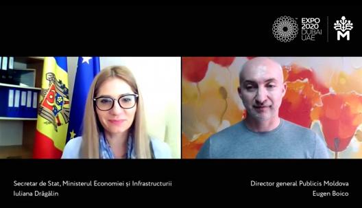 Condițiile de participare a Republicii Moldova la Expo Dubai 2020, bugetul aprobat, oportunitățile economice și perspectivele de dezvoltare ca urmare a participării țării noastre la expoziție – au fost unele dintre subiectele abordate de Iuliana Drăgălin, secretar de stat al Ministerului Economiei și Infrastructurii, în cadrul unei sesiuni live.