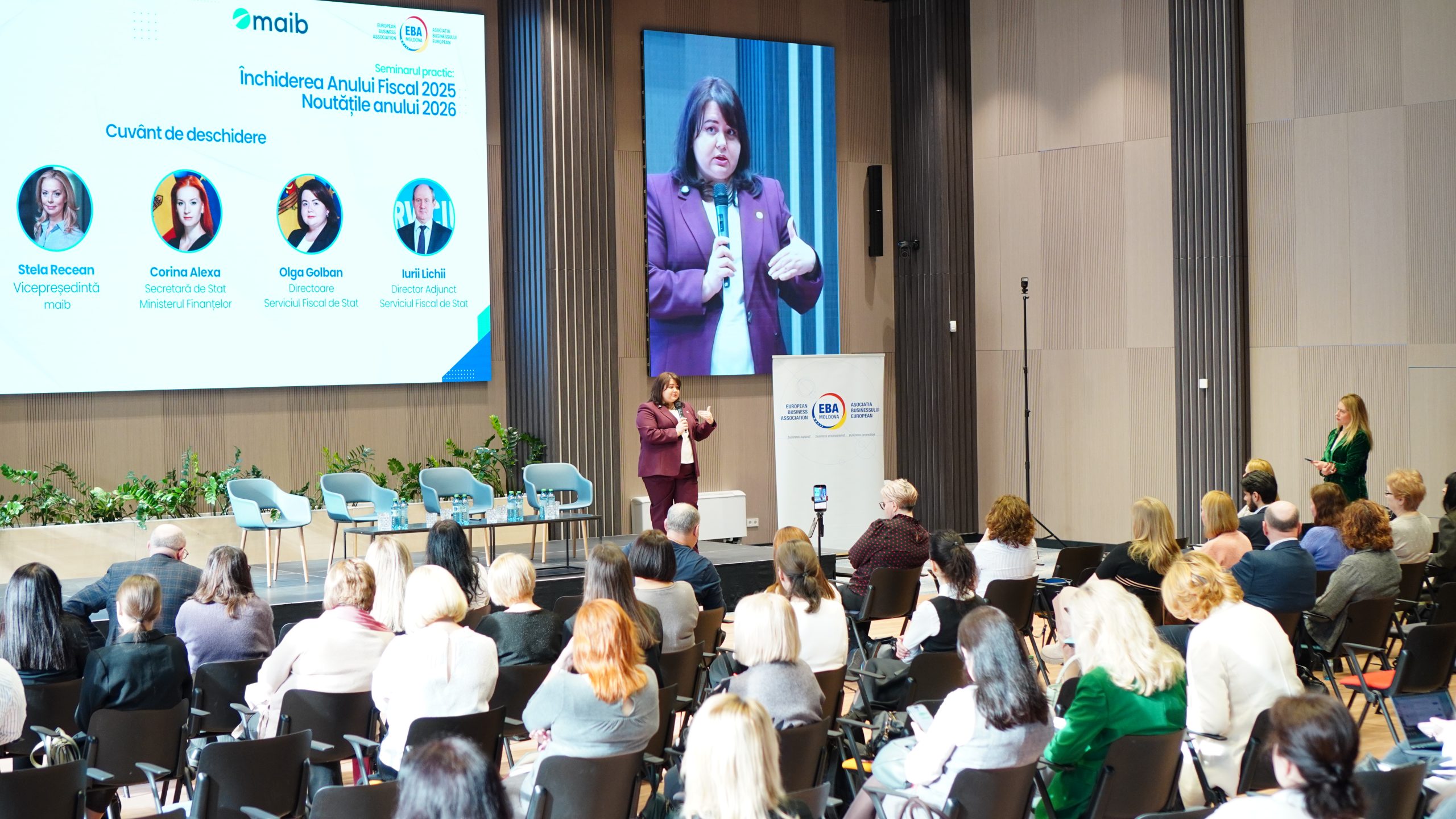 Directoarea Serviciului Fiscal de Stat, Olga Golban, a participat pe 5 martie 2026 la evenimentul dedicat principalelor modificări fiscale aplicabile pentru anul 2026 și aspectelor practice aferente închiderii anului fiscal 2025. Evenimentul a fost organizat de Asociația Businessului European în parteneriat cu autoritatea fiscală.