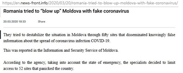 SIS prezintă unele exemple de știri false cu privire la evoluția COVID-19 și măsurile de protecție și prevenire care au stat la baza blocării unor resurse anonime, acestea fiind distribuite intens în grupurile de comunicare pe rețelele de socializare.