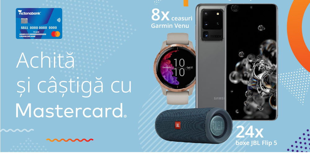 Pentru că Victoriabank, încurajează plățile fără numerar și pentru că Victoriabank este despre #digitalbanking, în perioada 02.11.2020 – 27.12.2020, Victoriabank … Continuă lectura Smartphone, ceasuri inteligente și boxe portabile pentru cei mai activi deținători de Mastercard de la Victoriabank