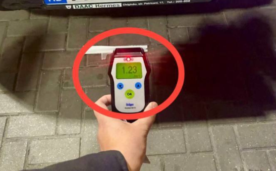 Potrivit Poliției, testul alcoolscopic a arătat o concentrație de 1,23 mg/l vapori de alcool în aerul expirat, ceea ce indică o stare avansată de ebrietate.