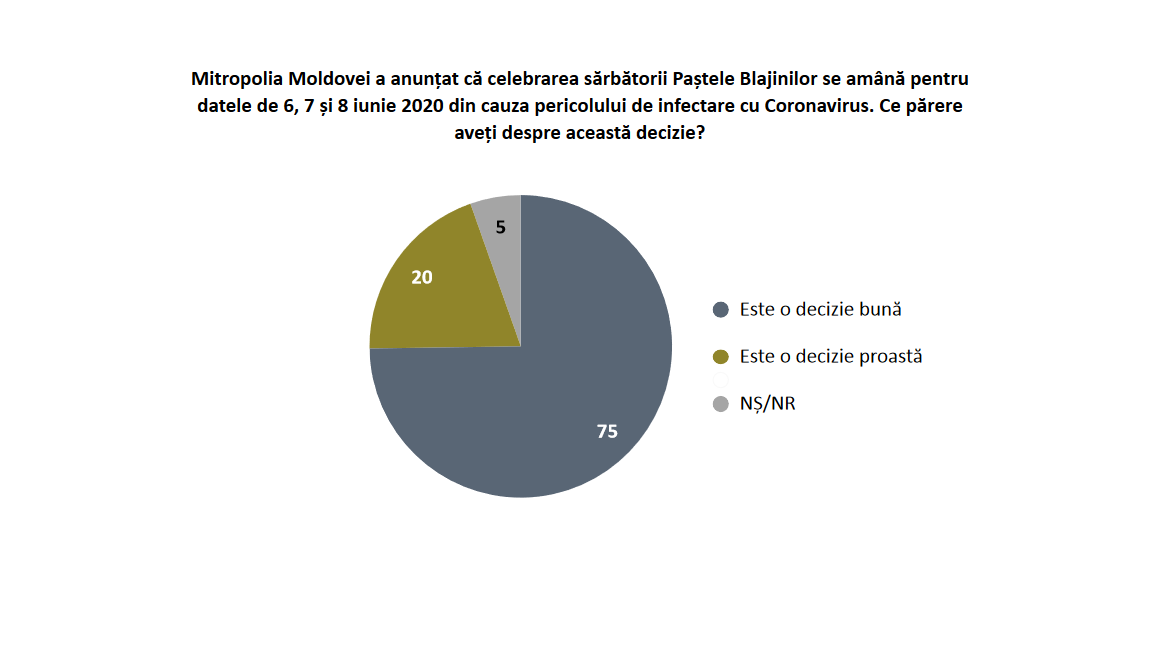 În cadrul unui sondaj telefonic realizat de către compania Imas, moldovenii s-au arătat a fi deacord cu decizia luată de către Mitropolia Moldovei. Mai exact, 75% dintre respondenți au răspuns că este o decizie bună, de a amâna Paștele Blajinilor.