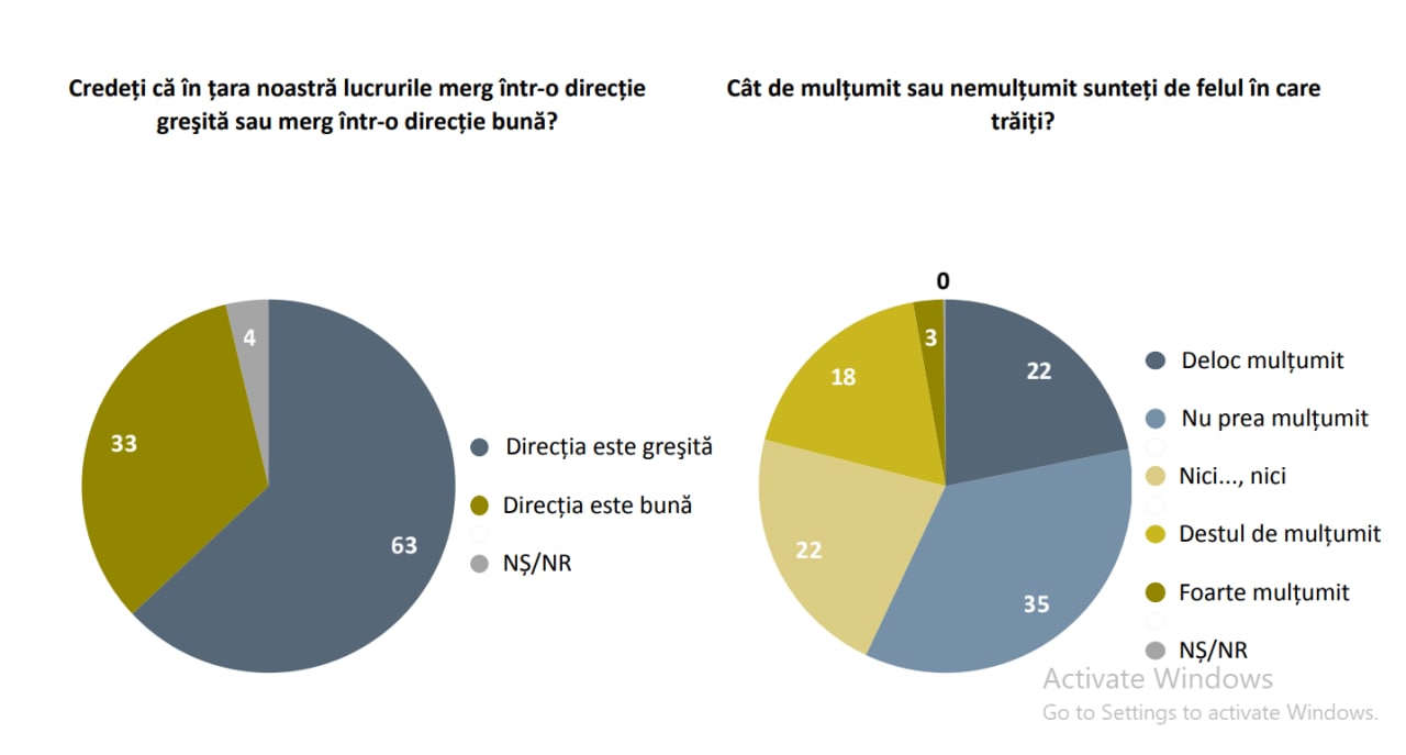 Potrivit studiului, 63% dintre respondenți au declarat că în ţara noastră lucrurile merg într-o direcţie greşită și doar 33% au declarat că direcția este una corectă, iar 4 la sută au refuzat să răspundă la această întrebare.
