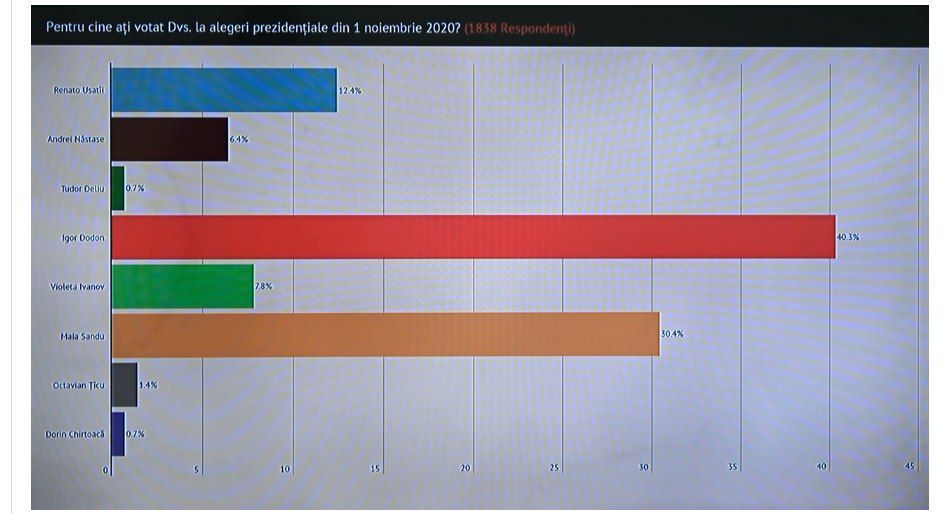 Igor Dodon și Maia Sandu se vor duela în turul doi al alegerilor prezidențiale. La scrutinul de astăzi, actualul președinte a obținut cu 10 la sută mai multe voturi decât candidatul PAS. Sunt rezultatele unui sondaj, efectuat în ziua alegerilor prezidențiale.