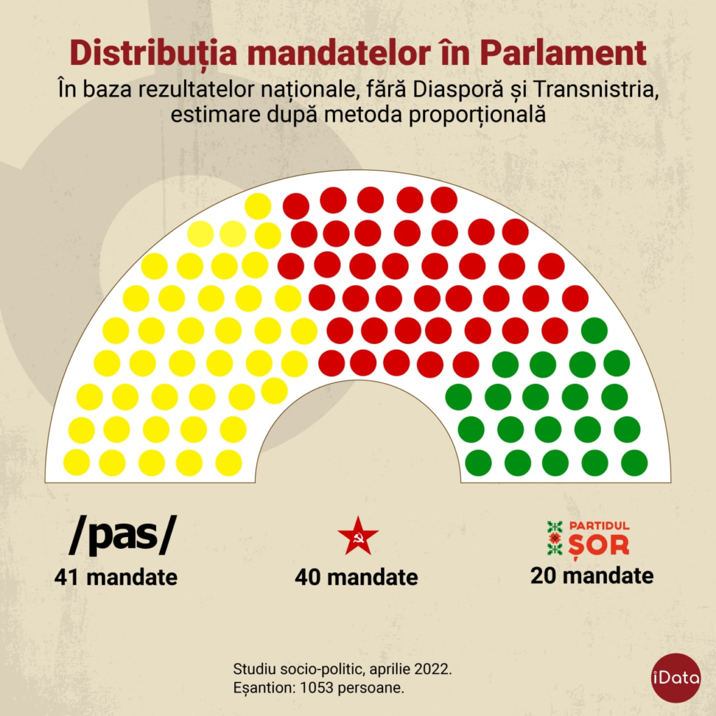 Partidul „ȘOR” este formațiunea care ar înclina balanța de forțe în viitorul Parlament. În cazul unor alegeri anticipate, Partidul „ȘOR” ar acumula cel puțin 20 de mandate de deputat sau peste 12 la sută dintre voturilor alegătorilor, arată cel mai recent sondaj iData, publicat astăzi, 21 aprilie.