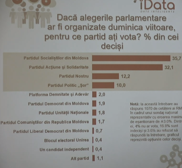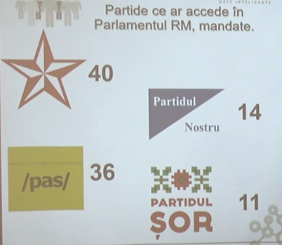 Alte două partide care ar accede în Parlament ar fi Partidul Nostru – cu 12,2% din voturile electoratului decis și Partidul Șor – 10%.