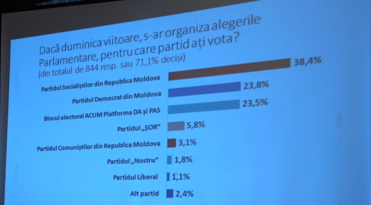 Ce ține de partidele pe care le-ar vota, pe prima poziție continuă să se afle Partidul Socialiștilor din Republica Moldova. Acesta ar fi votat de către 27.3%, pe poziția a doua se află Partidul Democrat din Moldova, acesta ar fi fost votat de către 16.9%. Pe poziția a treia, la o diferență mică, găsim blocul ACUM, alcătuit din PAS și PPDA, aceștia au fost nominalizați de către 16.7% dintre persoanele intervievate.