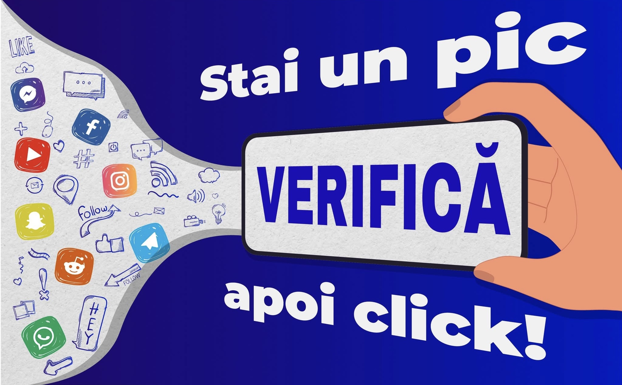 Campania „Stai un pic. Verifică, apoi click!” este desfășurată de Consiliul Audiovizualului și AO „Centrul Media pentru Tineri”, cu sprijinul financiar al Uniunea Europeană.