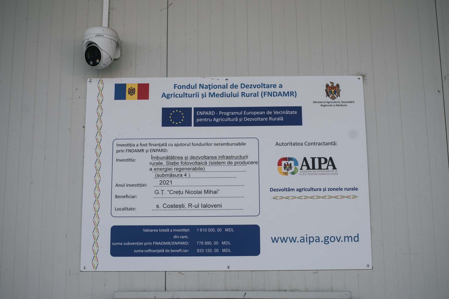 Nicolae Crețu, din satul Costești, raionul Ialoveni, este unul dintre beneficiarii de subvenții. Deja de 15 ani, el dezvoltă o afacere în domeniul viticulturii. Pentru a păstra strugurii, a construit un depozit frigorific cu o capacitate de 600 de tone. Electrician de profesie, antreprenorul a încercat mereu să găsească soluții de a reduce cheltuielile lunare pentru energia electrică. Astfel, a decis să instaleze panouri fotovoltaice.