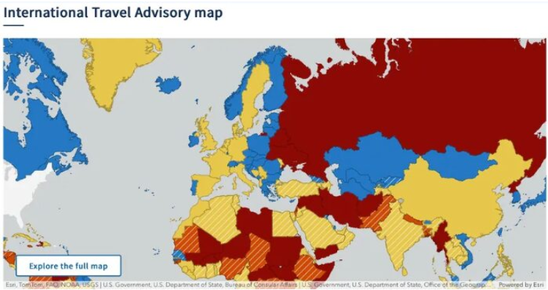 Sistemul american de avertizare include patru niveluri, de la Nivelul 1 „precauții obișnuite” până la Nivelul 4 ”nu călătoriți”, fiind actualizat periodic în funcție de riscurile de securitate, criminalitate, tulburări civile și sănătate publică.